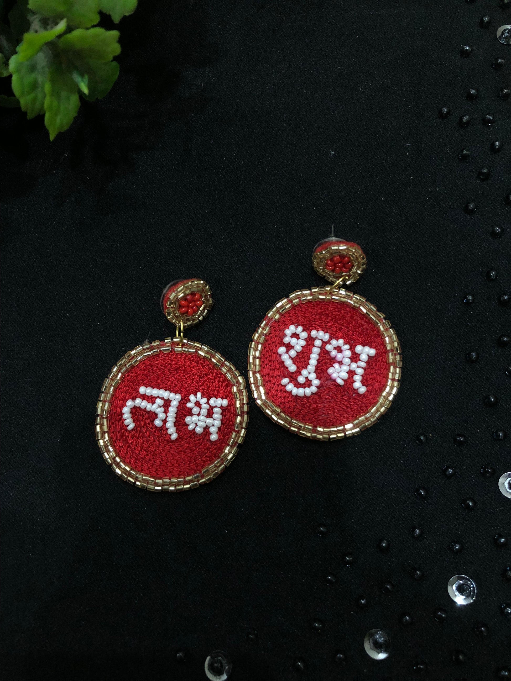 Handmade Shubh Labh Beaded Earrings – Symbol of Prosperity & Positivity