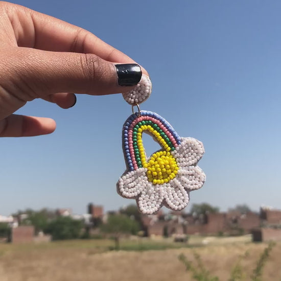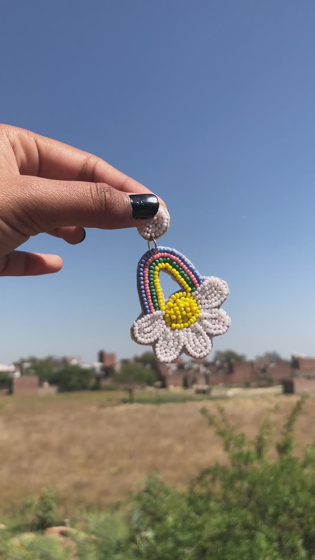 Each tiny bead is thoughtfully placed, creating a piece that feels both nostalgic and boldly whimsical. Whether you're chasing rainbows or spreading them, these earrings are your new go-to feel-good accessory.