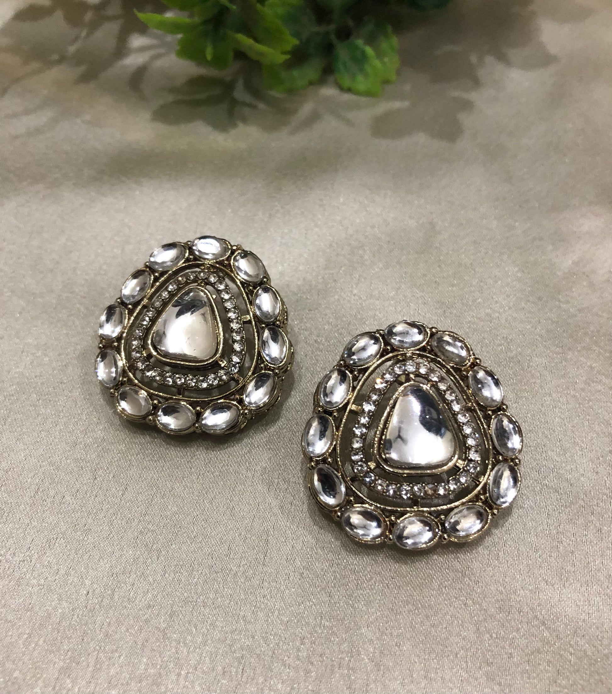 Crafted with precision and adorned with sparkling stones, these earrings add a touch of glamour and class to both traditional and modern outfits. Whether you’re attending a wedding, a festive gathering, or an elegant evening event, these lightweight statement studs radiate refined beauty and confidence.